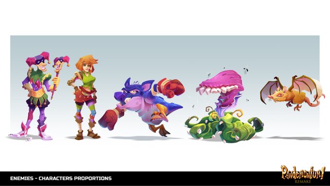 Final lineup of the characters studied during 2020 for a hypotetical Pandemonium remake. It was fun :) #pandemonium #game #videogames #TFB #toysforbob #90s #fun #cartoon #stylized #pinupart #redhead #art #ArtistOnTwitter #ActivisionBlizzard #girl #conceptart #creature #funny