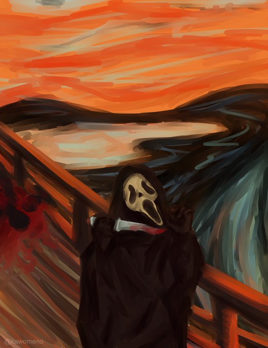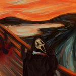 #panelatober day 30 - rereading. i did ghostface, from scream, on the rereading of the scream painting!! haha im so funny haha please dont kill me mr ghostface i wanna be in the sequel #Scream #inktober2021 #art