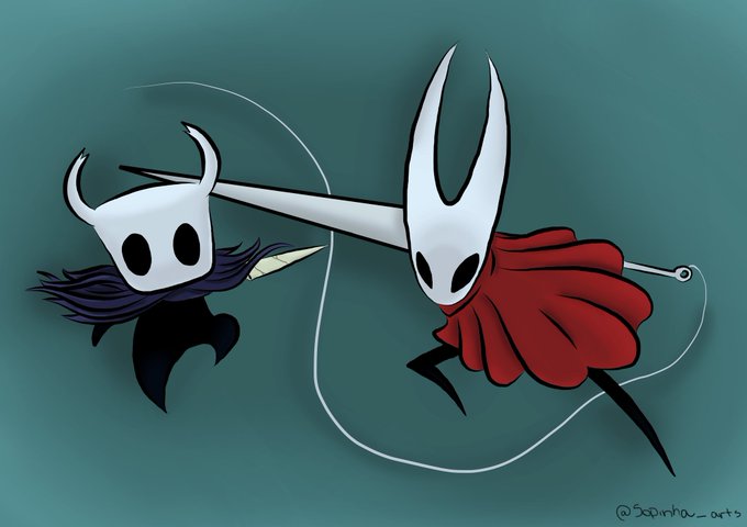 Day 22-Games "Deepest silence in holy shell, Given nail and named a Knight, Bound by chain and egg and spell, Hear Our plea! Reveal thy Light!" #HollowKnight #fanart #digitalart #panelatober #inktober2021 #drawtober