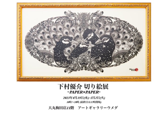 個展までもうすぐなので、今回展示する作品を見て欲しい。ご興味を持って頂ければ嬉しいです。良かったらリツイート拡散もお願いします🤲 #切り絵 #papercuttingart #art 下村優介切り絵展-PAPER×PAPER- 2023/4/19(水)-5/2(火) 10時-20時(最終日は17時閉館) 大丸梅田店11階アートギャラリーウメダ