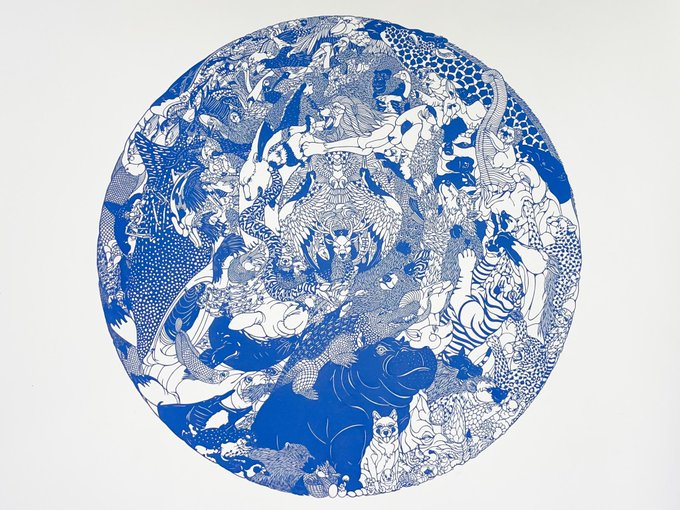 新作切り絵です。地球を意識して、約120種類の生き物を切り込んでおります。どこになにが居るか探してみて下さい。 ベタ面に見えますが、細かい穴も空けております。写真では上手く写りません。 朝イチの応援RT📣よろしくお願いします🤲 #切り絵 #papercuttingart #art #illustration