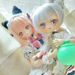 お洋服からお人形が生えてくることもあると思うよ だってもぷちさんのカラフルメイドから大きなマナが生まれそうになってるからw もうボディふやせませんで〜 1/6マナ「いや、信用できませんね…」 #おはドル #parabox #mimiel_doll
