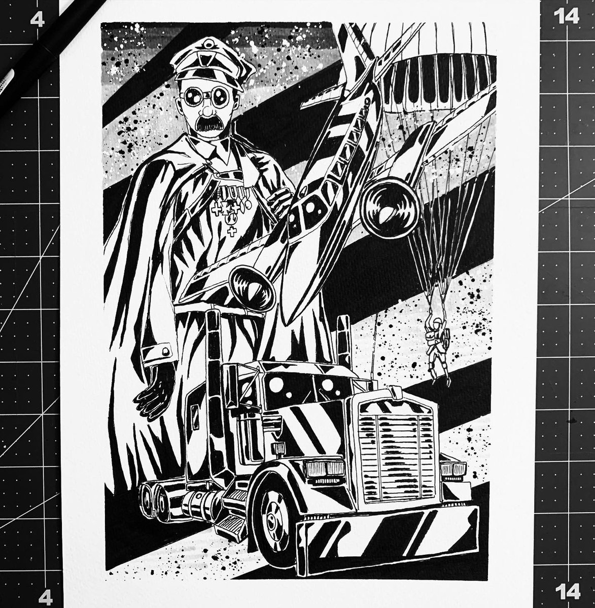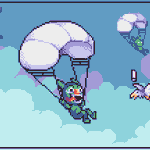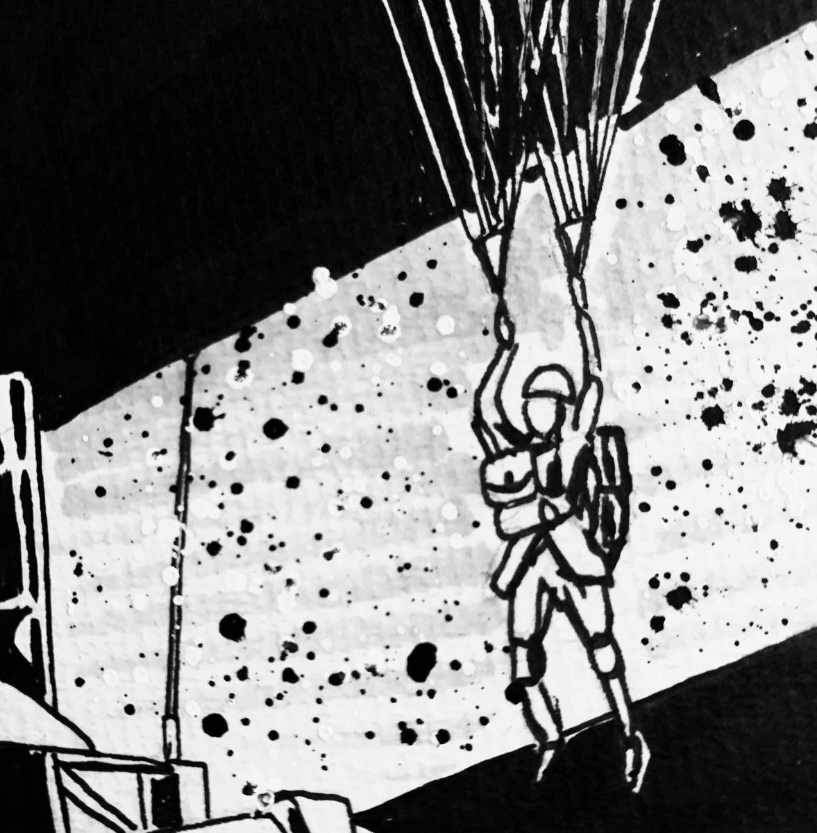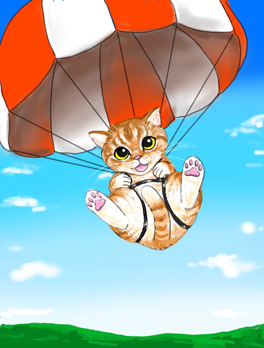 Day 11: Parachute 🪂 Neither Cat nor Mouse would like doing this but I drew it anyway 😆 #catandmousetober2022 #catandmousecomics #artist #parachute #jump #inktober