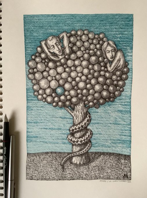 We would like to sleep through it all .... Nous aimerions dormir à travers tout cela .... #drawing #inkdrawing #dessin #paradise #art #arte #artistontwitter