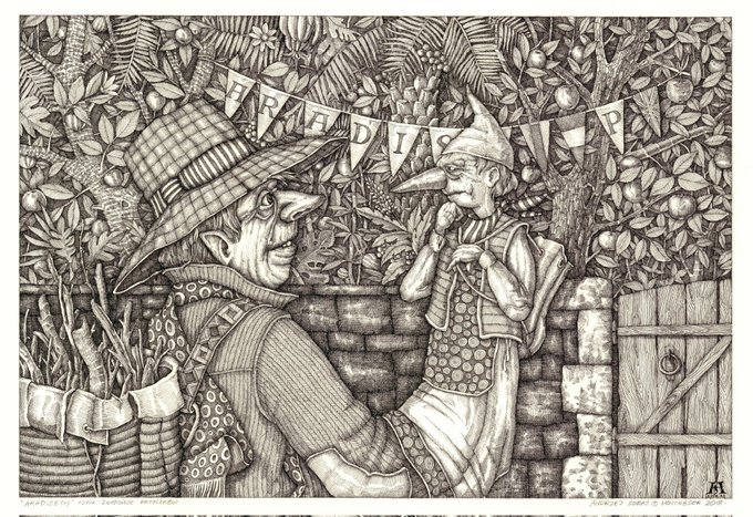 The Stick thieves. Les Voleurs de bâtons. #drawing #dessin #illustration #inkdrawing #paradise #art #artist #ArtistOnTwitter #hatching
