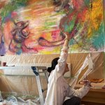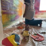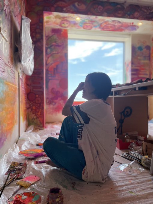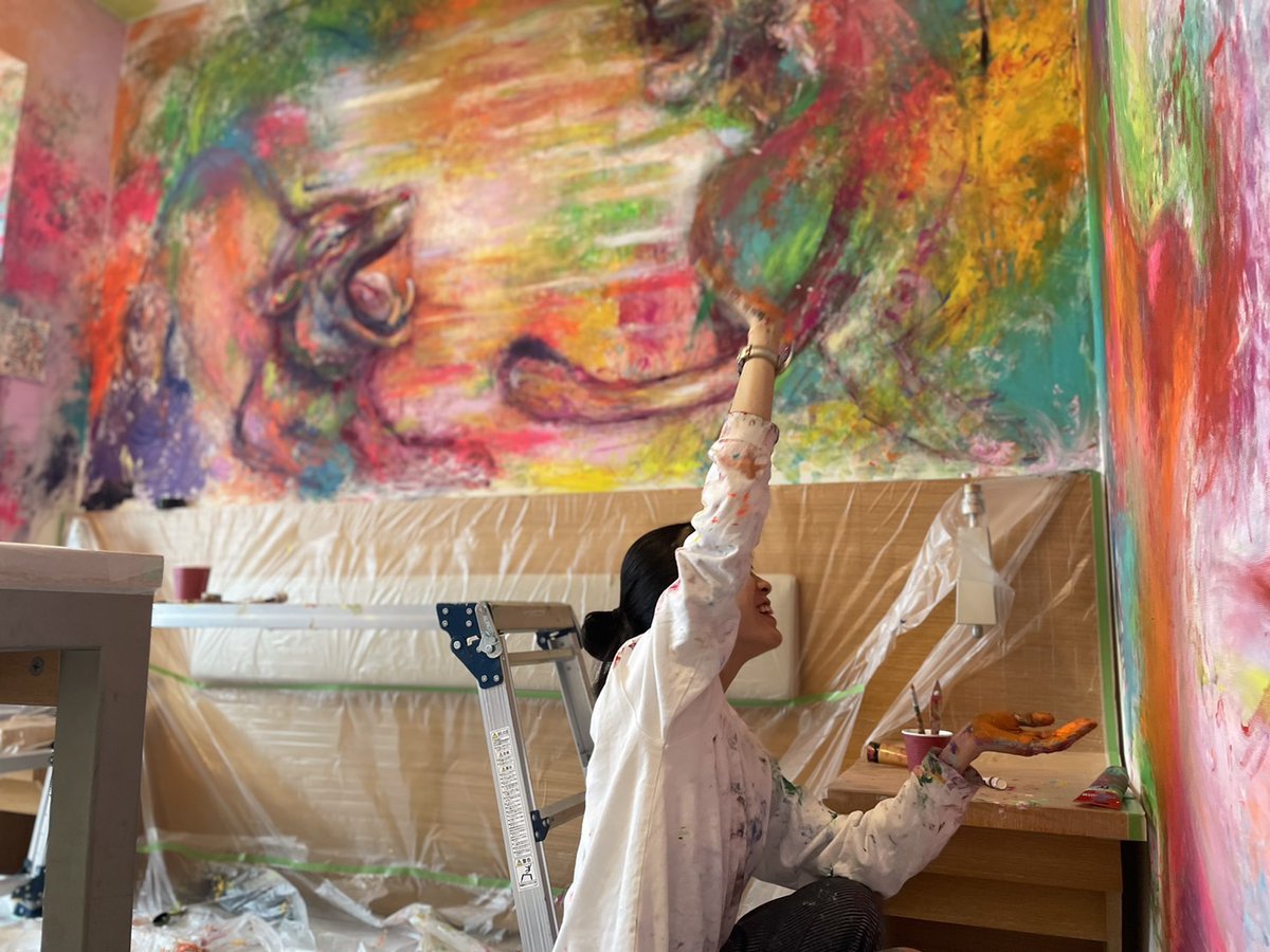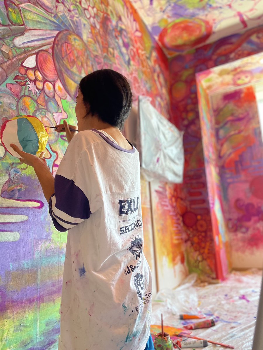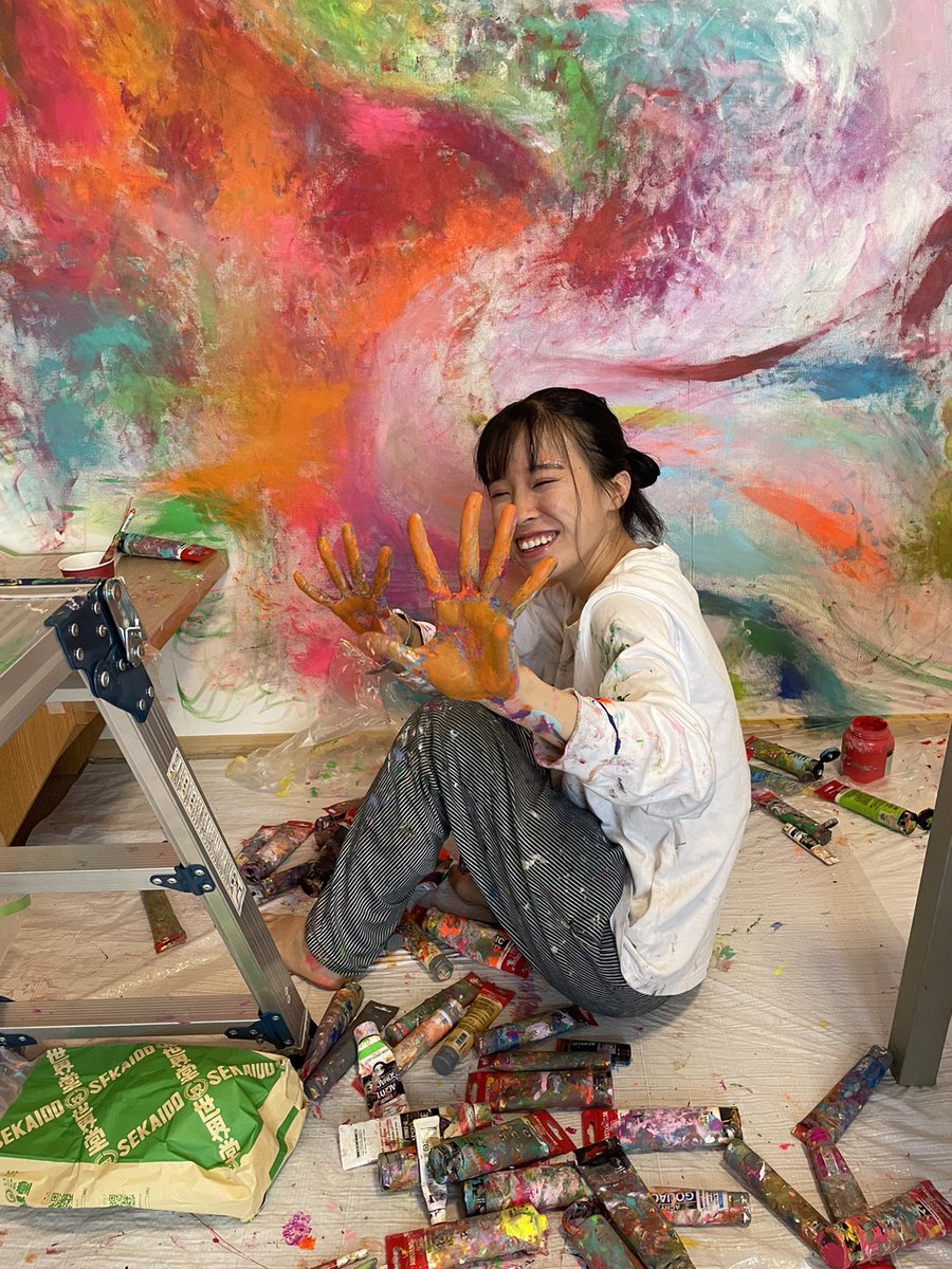 @parkhoteltokyo アーティストルーム制作中のおおはしみさちゃん✨天真爛漫な笑顔から真剣な眼差しになったりコロコロと表情を変えながら楽しそうに制作していました!#パークホテル東京 #parkhoteltokyo #paralymart #パラリンアート #アーティストルーム #おおはしみさ
