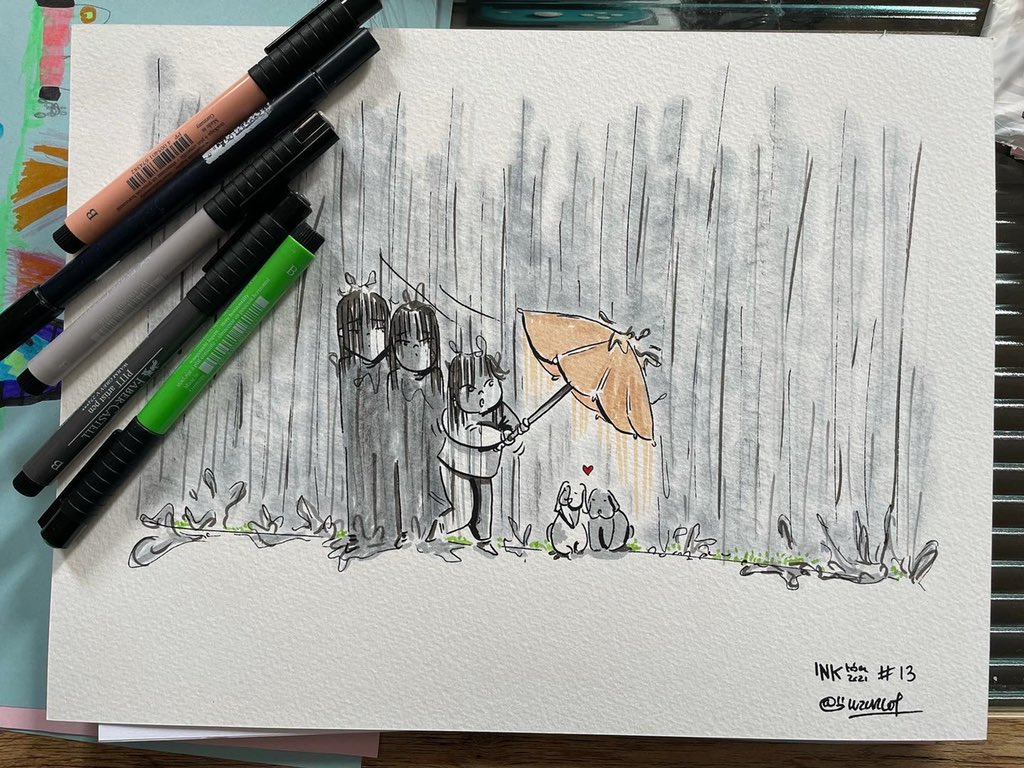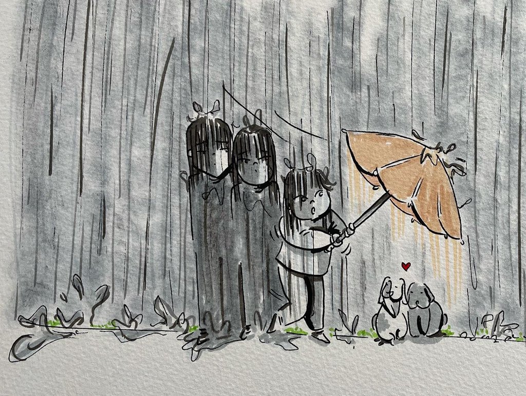 Thème TOIT #13 Rattrapage … #soeurs #inktober #inktober2021 #luzcargot #totoro #bernardetseccotine #kids #parapluie #lapin #mignonnerie
