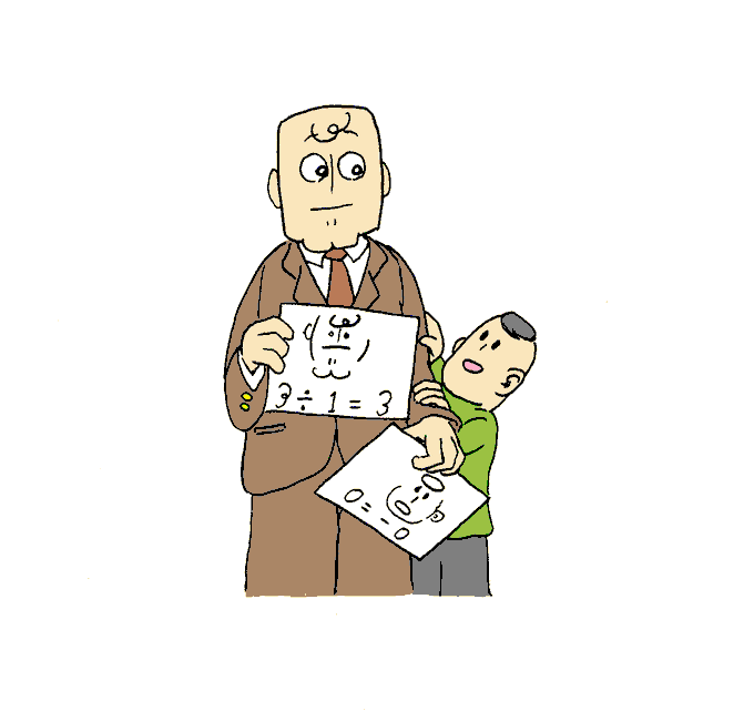 顔の中に[ 0 = -0 ][ 3÷1=3 ]が入ってる親子 #drawing #illustration #イラスト #お絵描き好きさんと繋がりたい #anthropomorphic #pareidolia #zero_equals_minus_zero