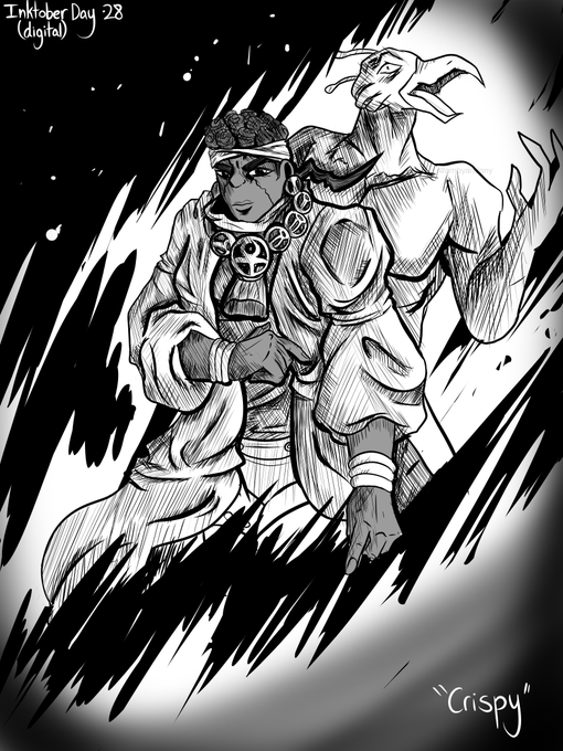 Anyways here’s today’s inktober! I’ve never drawn avdol before #inktober Day 28 (“Crispy”) #inktober2021 #inktober2021day28 #inktoberDay28 #digitalart #fanart #JoJosBizarreAdventure #JJBA #jjbafanart #stardustcrusaders #part3 #muhammadabdul #muhammadavdol #avdol #magiciansred