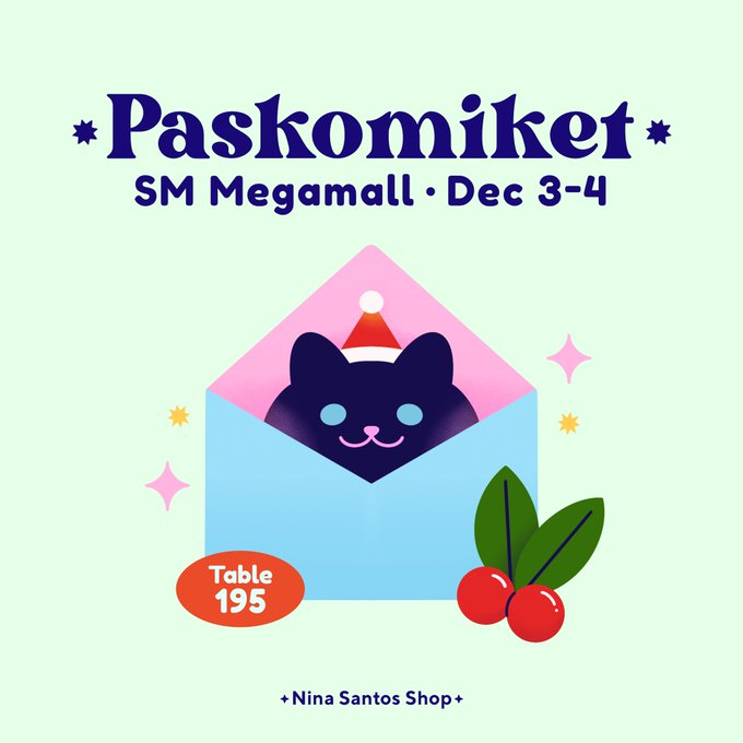 Hiya! We'll be at Paskomiket SM Megamall Megatrade 2 from Dec 3-4 11AM-8PM 🐱🎄 I will be with @ame_senpai_art at Table 195! We have new goodies in store and this will be my last event for the year ✨ See thread below for more info! @komiketph #paskomiket #paskomiket2022 #artph