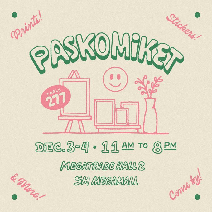Hello, I am happy to officially announce that I will be tabling at Paskomiket this December 3-4 to sell exclusive prints of my artworks. More info coming soon. See you there! #PASKOMIKET2022