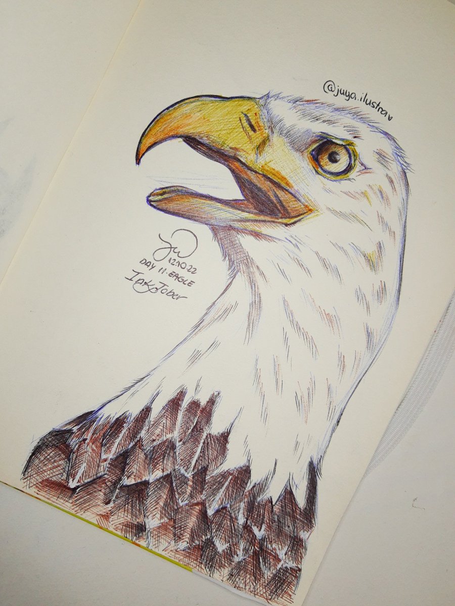 Dia 11 Águia > sketch feito totalmente com canetas esferográficas coloridas #sketchbook #sketch #inktober #inktoberbrasil #inktoberbr #inktober2022 #day11 #dia11 #eagle #aguia #animal #bird #passaro #colors #traditionalart #traditionalartist #illustration