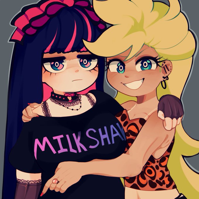 Girls night, giggles and back massages with Panty and Stocking 💙💖 #pantyandstocking #cosplaygirls #paswg #anime