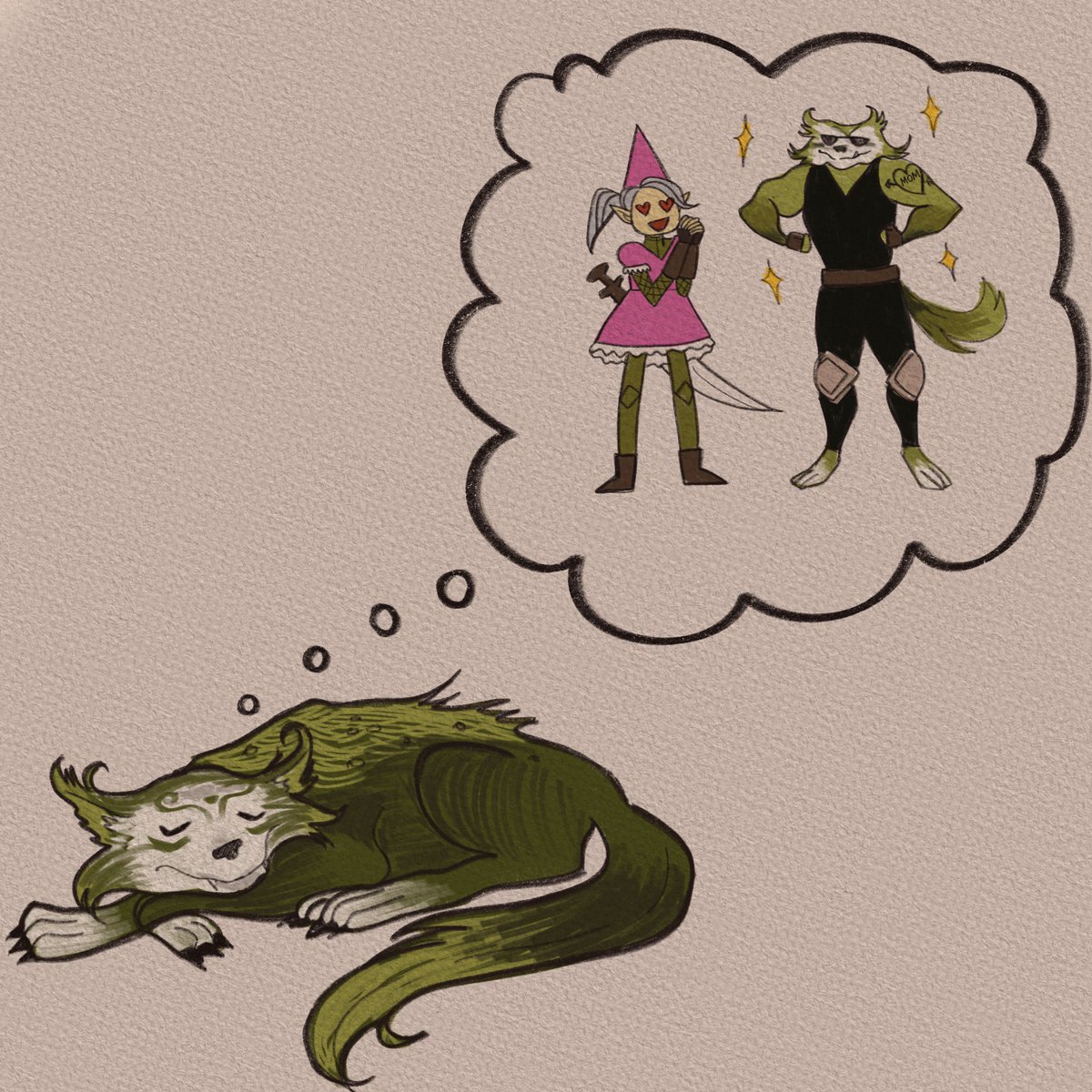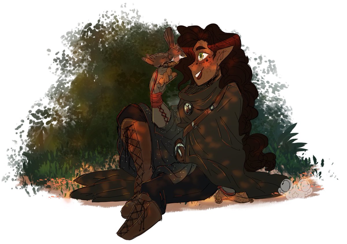 In her #pathfinder1e version, Alex had a cooshee as an animal companion called Spike 🌿 he was cool and killed a manticore once ♥️ #dndart #originalcharacter #ttrpg