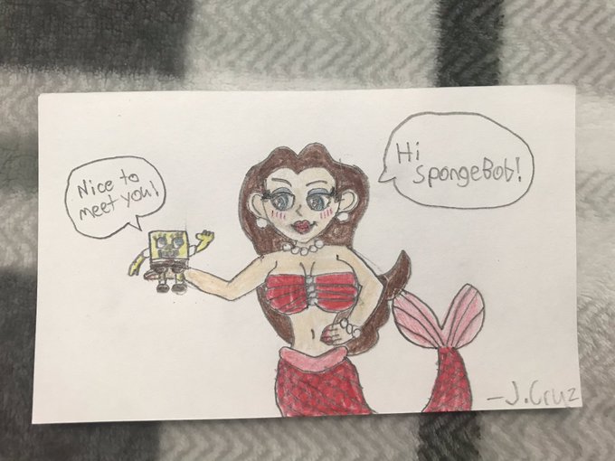 It’s #mermay so here’s mermaid Pauline holding SpongeBob #mermay2022 #Nintendo #supermario #fanart #drawing #pauline