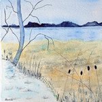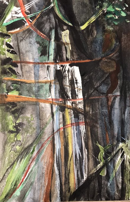 “A world which increasingly consists of destinations without journeys between them, a world which values only “getting somewhere” as fast as possible, becomes a world without substance.” Alan W. Watts In the Groove. Sticks and Stones. #clmooc #watercolor #landscape #paysage