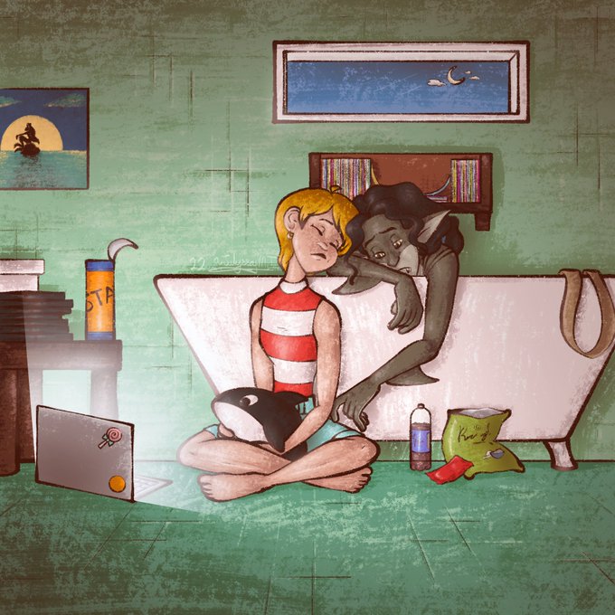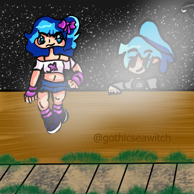 Here's day 6 and 7 of #SkyverseInktober ! I choose a night time setting and wanted something calming. Very busy person. But I'm glad I made this! #fridaynightfunkin #fridaynightfunkinfanart #skyverse #fnfsky #fnfmod #Nightsky #Peaceful #CHILLOUT