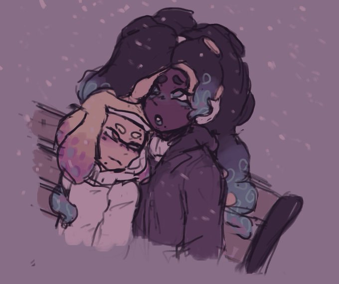 #pearlinaweek day 1: an unexpected snow day i know I said i wasnt gonna have time for it this year but i caved in and drew them 😭 most of these are gonna be quick doodles tho #pearlina #splatoon