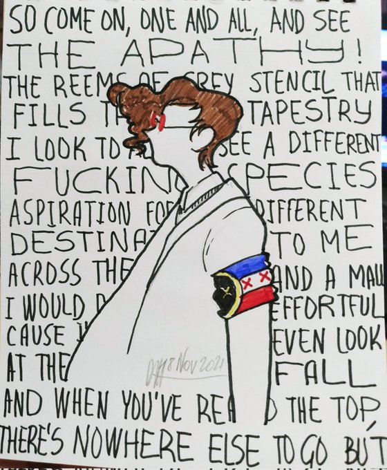 finally watched @WilburSoot's @LVJYonline gig on twitch, which inspired me to draw this a bit late for #november16th but still excuse the quality, might do a better one later! #pebblebrain #thefall #wilbursootfanart #revivedburfanart