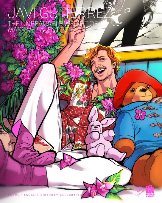 #pedropascalminimarathon23 DAY 1🌺JAVI - マッシブ・タレント/ The Unbearable Weight Of Massive Talent (2022) ブーゲンビリア 「あなたしか見えない」 Bougainvillea "passionate attraction" 1日目は俳優ニコラス・ケイジに熱く夢中なハビ!『マッシブ・タレント』は現在日本で劇場公開中 1/3