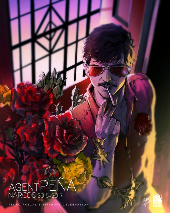 #pedropascalminimarathon23 DAY 2🌹 ハヴィエル・ペーニャ - ナルコス / NARCOS (2015-2017) カーネーション 「心に哀しみを(濃い赤)」「失望(黄)」 Carnation 'Love and affection(deep red)' 'Disappointment (Yellow)' 2日目は『ナルコス』からS3を跨いで闘ったペーニャ捜査官🕶 (1/3)