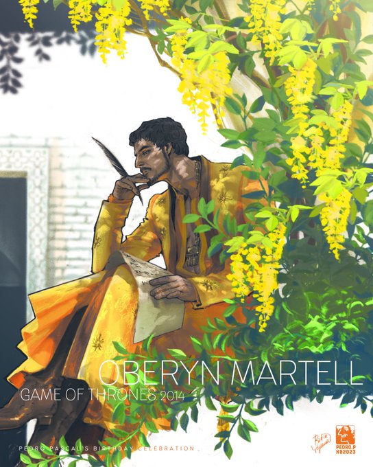 #pedropascalminimarathon23 DAY 4💐 オベリン・マーテル/ OBERYN MARTELL - ゲーム・オブ・スローンズ/ Game Of Thrones (2014) キングサリ「淋しい美しさ」 Golden chain tree 'pensive beauty.' 4日目は『ゲーム・オブ・スローンズ』から、赤い毒蛇ことオベリン・マーテル王子🐍(1/3)