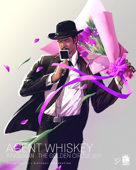 #pedropascalminimarathon23 DAY 5💐 エージェント・ウィスキー/ AGENT WHISKEY - キングスマン: ゴールデン・サークル/ Kingsman: The Golden Circle (2017) 紫チューリップ「不滅の愛」 Purple tulip 'Royalty.' 5日目はテキサスから愛をこめて、ステイツマンのエージェント・ウイスキー🥃(1/3)