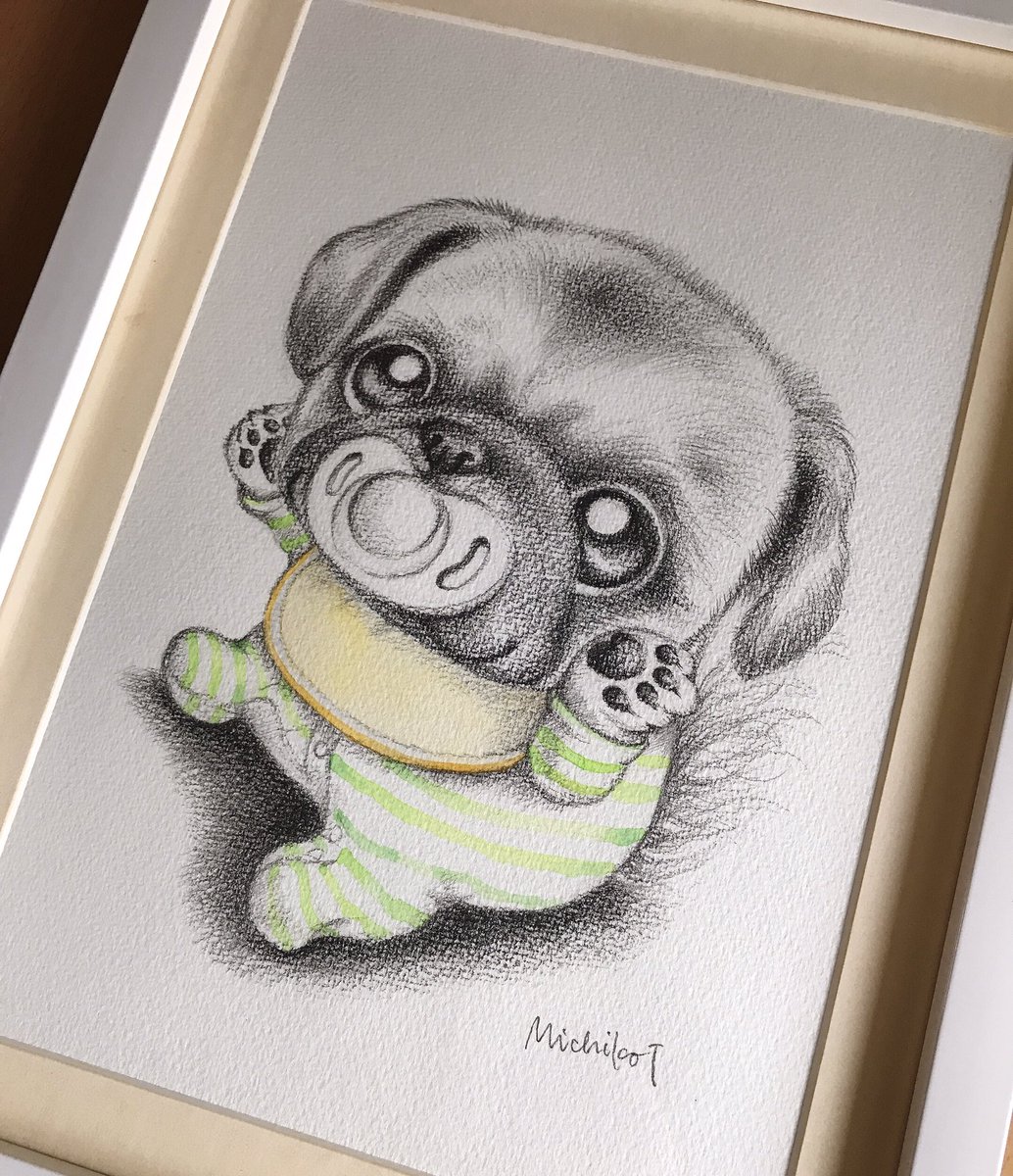 本日のお引越し。 ご購入いただきありがとうございました。 _/\○_[感謝状]💖❤️💝 クリスマスイラストは、原画のご希望がありましたので、簡易額にお入れしてお送りしました。レアなパターンです。 #pyrography #Englishbulldog #pekingese #watercolor #ウッドバーニング #水彩画