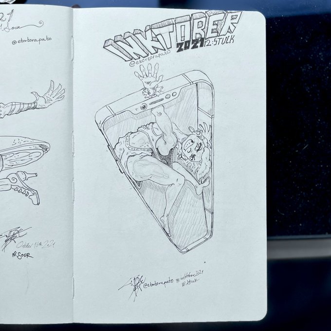 Here’s the #ink and #digitaldrawing planning #sketch for #inktober2021 #stuck #prompt. #drawing #phone still playing catch up and #coloring in the coming days. The digital plan piece was sketched up in @Procreate #pencilshading for color red #characterdesign #coming #art