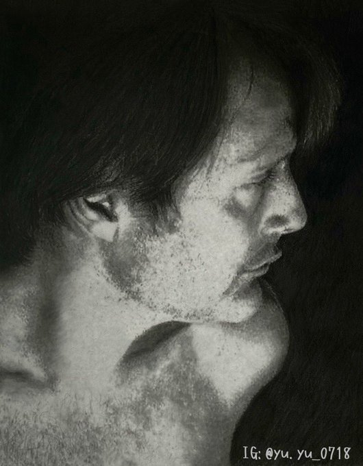 Happy New Year🎍 ズレちゃった💧 そして写真み出す時間もなく新年早々に失敗作をupしちゃいましたが...皆様、昨年中は色々ありがとうございました。今年もどうぞ宜しくお願いします🙇♀️ #マッツミケルセン #madsmikkelsen #絵描きさんと繋がりたい #鉛筆画 #pencilart #pencildrawing #pencilsketch
