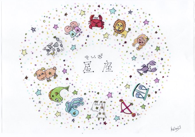 ペン画:12星座 A6サイズ たまには息抜きで違うタッチで 落書き感覚にて描きます🍀 #ペン画 #イラスト #星座 #penink #illustration #drawing #constellation