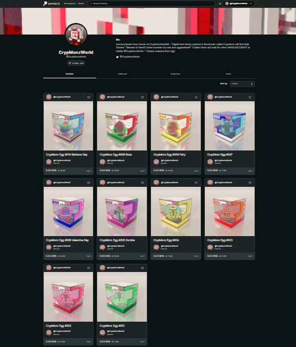 CrypMonz Egg #013 & #014 now available at app.pentas.io/user/CrypMonzW…… Come and grab it now!!! Dont forget check their rarity🔥🔥🔥 Only at CrypMonzWorld The Floor Price only 0.03 BNB follow by rarity!!! #CrypMonzWorld #nftart #Pentasio #WAGMI #voxelart #BSC #NFTCollection