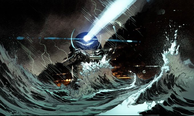 I love @martegracia colors on this panel from #xmen #1. It's so cinematic. Missing that giant X-mech too. I hope to draw him again someday. I imagine seagulls nesting all over him... #xmen #comics #art #martegracia #pepelarraz #xmech