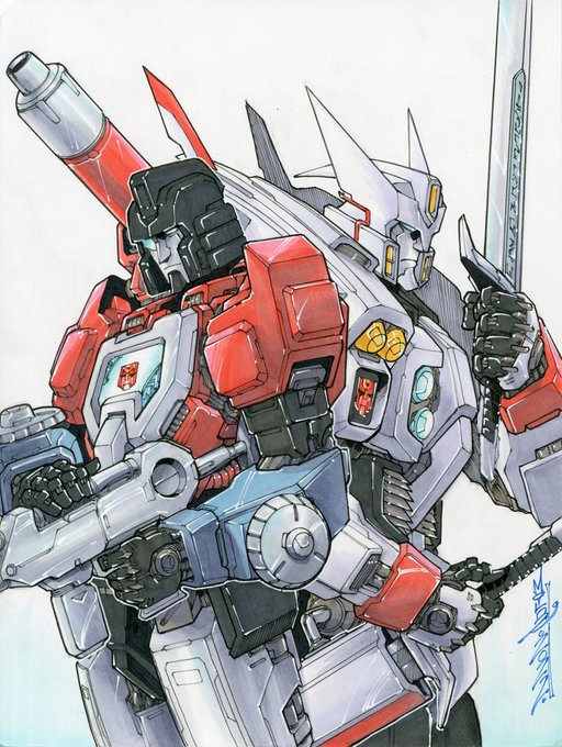 Perceptor and Drift commission 9x12 Traditional colors #Transformers #Hasbro #IDW #AllhailMegatron #MTMTE #commission #Perceptor #Drift #copicmarkers