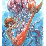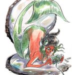 Children's Book Illustrator's Group, CBIG, theme is MERMAIDS. "I know if you listen to a conch shell on shore you will hear the ocean, but what does the mermaid hear?" #cbigartshare #CBIGNYC #cbigMember @cbigNYC #mermay2022 #pernillesmondayartchallenge #mermaids