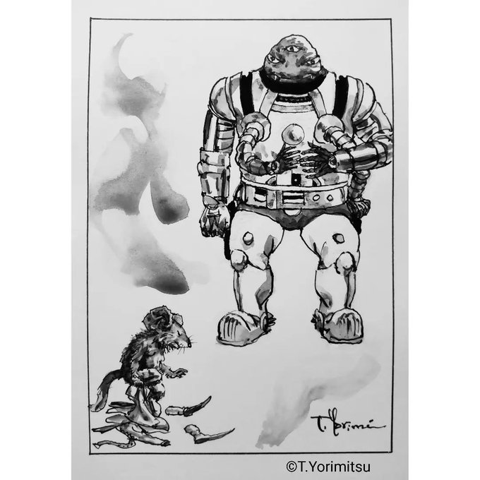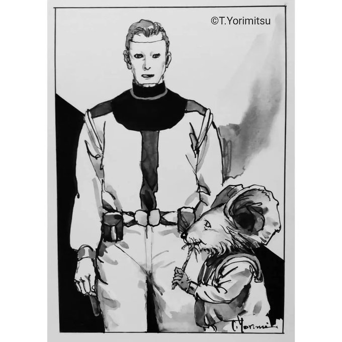 ローダンシリーズより 時空の果てに吹っ飛ばさないと、「戦争に勝者はいない」ということがわからない人が存在するのです。 #依光隆 #takashi_yorimitsu #宇宙英雄ローダンシリーズ #perryrhodan #グッキー #gucky #挿絵 #イラスト #illustration #昭和のイラスト