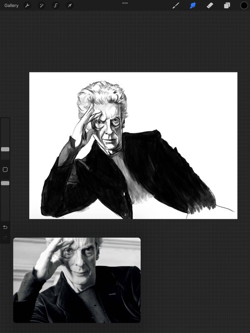Been using Procreate for years so just today discovered how to have the reference pic on screen but not the n canvas. #drawing #PeterCapaldi #fanart #sketch #procreateart #digitaldrawing #digitalart #DoctorWho