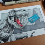 While I'm revisiting #Inktober art for #ThrowbackThursday here are 2 different times I did the Giant Dino intro from #PeterCapaldi's first #DoctorWho episode #Breath 2019 and then 2021, size matters 🤣