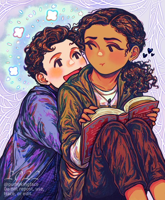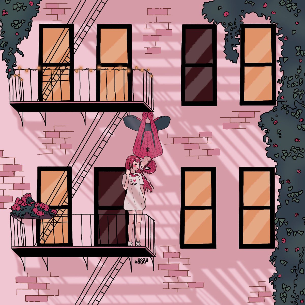 #inktober2021 Day 3 Peter doing a push-up with MJ reading a book on his back #petermj #spideychelle