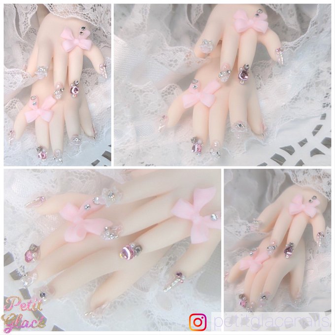 『🖤🤍ノーキラキラノーライフ🥺🖤🤍』量産型・地雷系ハンドネイルセット💅 【MDD フレッシュ】 ✨スカルプ+ジェル✨ 漆黒ベースにホワイトのリボンのデコレーション、編み上げはキラキラのプラチナ+白の3Dのホワイトハート🤍 #MDDはいいぞ #petitglacenails #プチグラ
