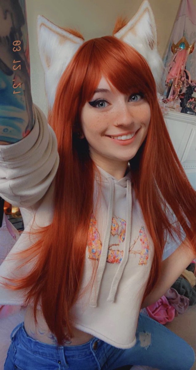 Holo cosplay coming along!! ❤️ my Christmas photoshoot is this weekend yayayay 🎄 are you ready? 😻 #spiceandwolf #cosplay #foxears #petplay #redhead #animegirl
