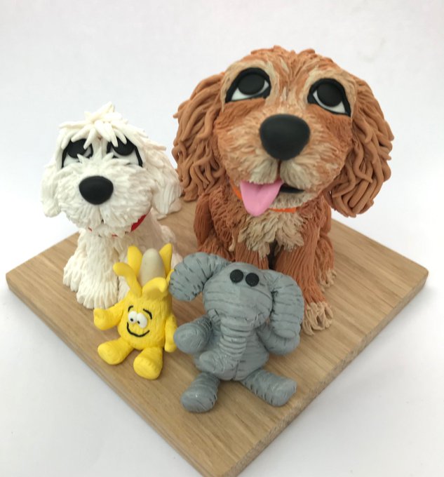Another tiny pair of pups 🔎 Winnie & Baxter. Custom miniature models #Earlybiz #MHHSBD #petportraits #polymerclay #ArtistOnTwitter #DogsofTwittter #handmade
