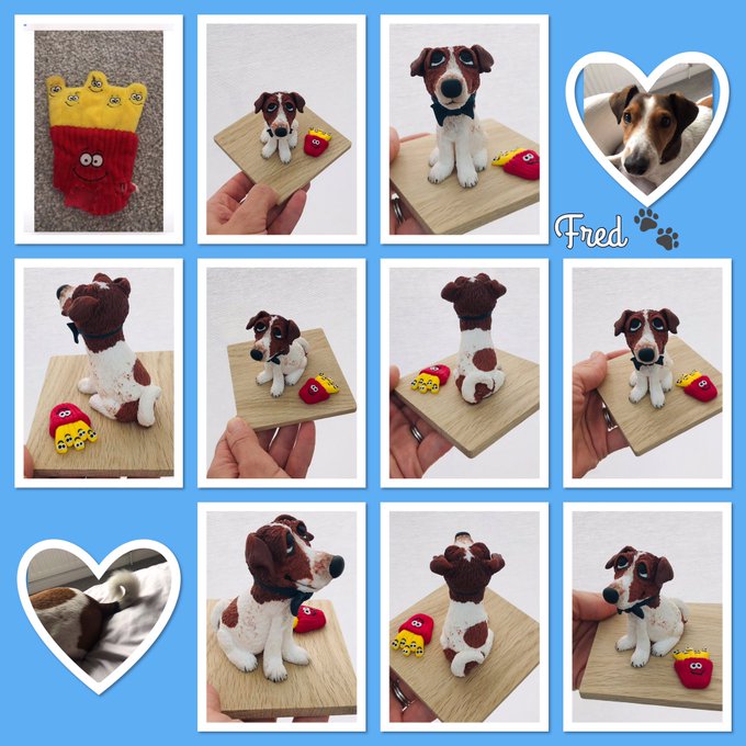 After a nice relaxing break over Easter I’ll be back to making my orders from next week!💃🏼 in the meantime here’s Fred, a sweet little Jack Russell commission from a few weeks ago #MHHSBD #petportraits #UKGiftHour #UKGiftAM #polymerclay #handmade