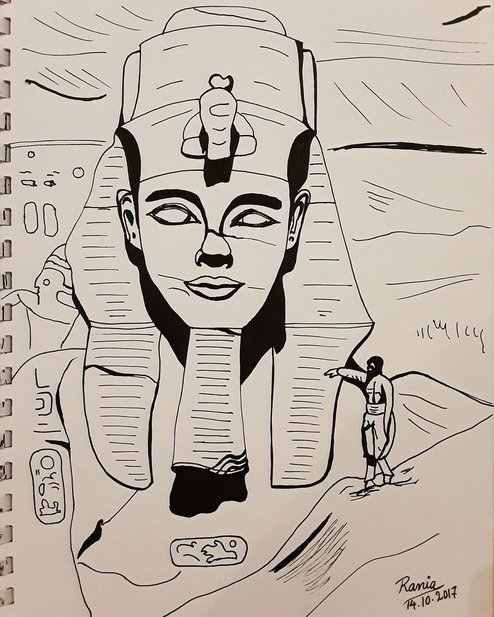 ファラオ:ツタンカーメン王 下描きなしの一発集中描き🔥 #ペン画 #イラストレーション #ファラオ #エジプト #illustration #Pharaoh #penillustration