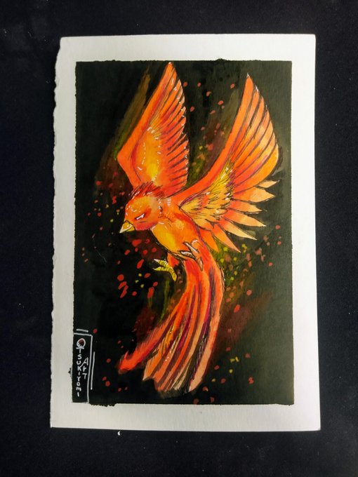 A phénix for Today A3 Watercolour and coloured pencil #aquarelle #aquarellepainting #aquarelleart #art #phenix #artcommunity #watercolor #colorpencil #artoftheday #crayondecouleur #traditionalart #mythology #fantasyart #frenchartist #fabercastell #mythical #fantasticbeast