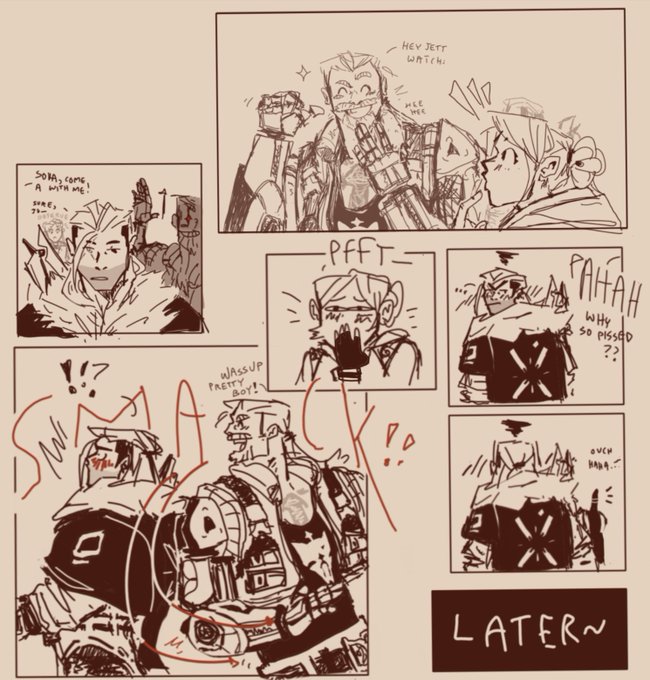 I noticed Breach calls Sova pretty boy and Jett calls Pheonix pretty boy too, so~ #VALORANT #Valorantfanart #ValorantArt #Jett #breach #SOVA #pheonix #Raze man this took a while hhhhhhhhh