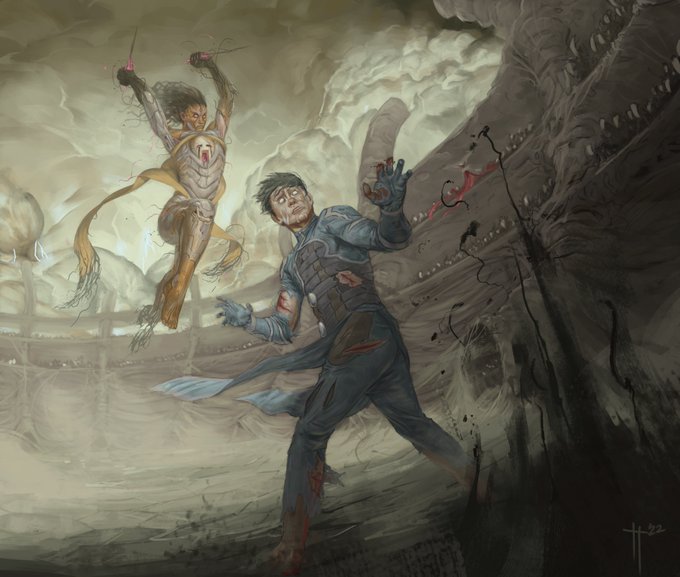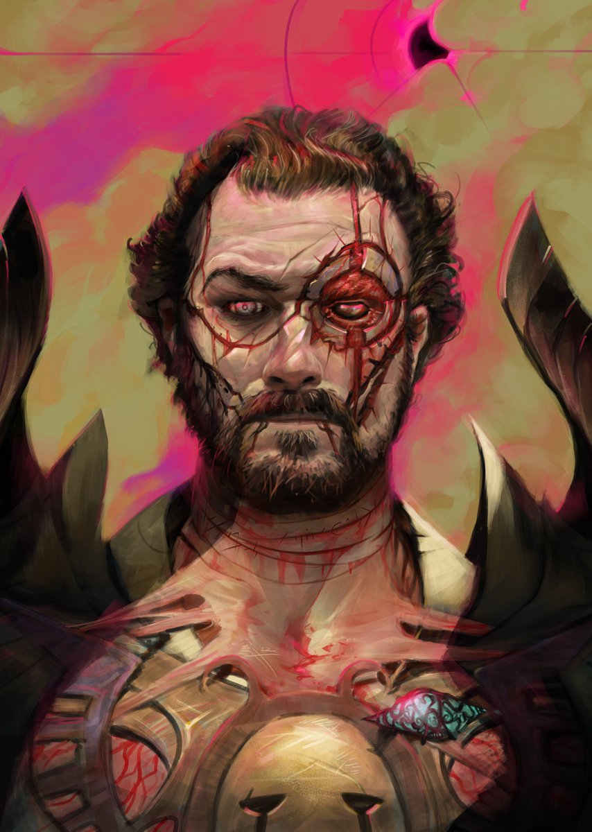 2月発売の『完全なる統一』に向けて、今日もファイレクシア勢力を増やすためのΦ活(過去絵の投稿)をします😆ファイ! 新ファイレクシアで人気といえば、この二人でしょう😍キャー❤︎ #MTG #mtgfanart #Phyrexia #magicthegathering #Sheoldred #EleshNorn