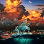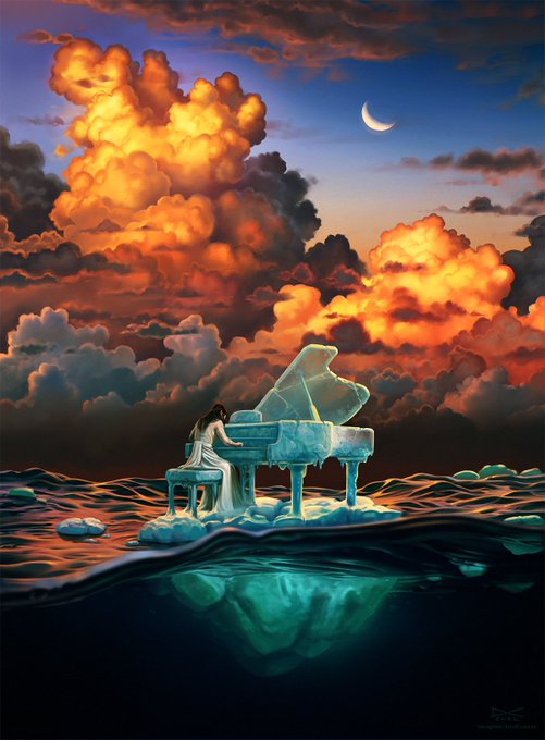 'Fragile Melody' differnt style to what ive been doing lately, a lot more blending and detail work, though as long as this image took i never get bored of drawing clouds :) #illustration #Art #nature #sea #clouds #sunset #procreate #piano
