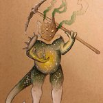 day 10: "Pick" Seems the spirits have taken a liking to the little green wanderers. :) #spirit #celestial #inktober #inktober2021 #art #illustration #dibujo #ink #drawing #Pickaxe
