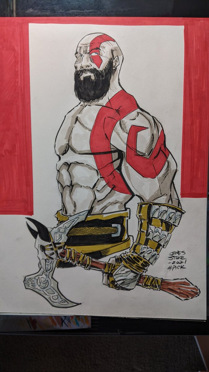 #INKTOBER Another day of trying to catch up. Day 10 @inktober #Pick #pickaxe #Kratos #GodOFWar #FANART @PlayStation #9x12 #PenSketch #MarkerSketch #OriginalArt #FORSALE #OpenForCommissions #inktober2021 I gave him a pickaxe